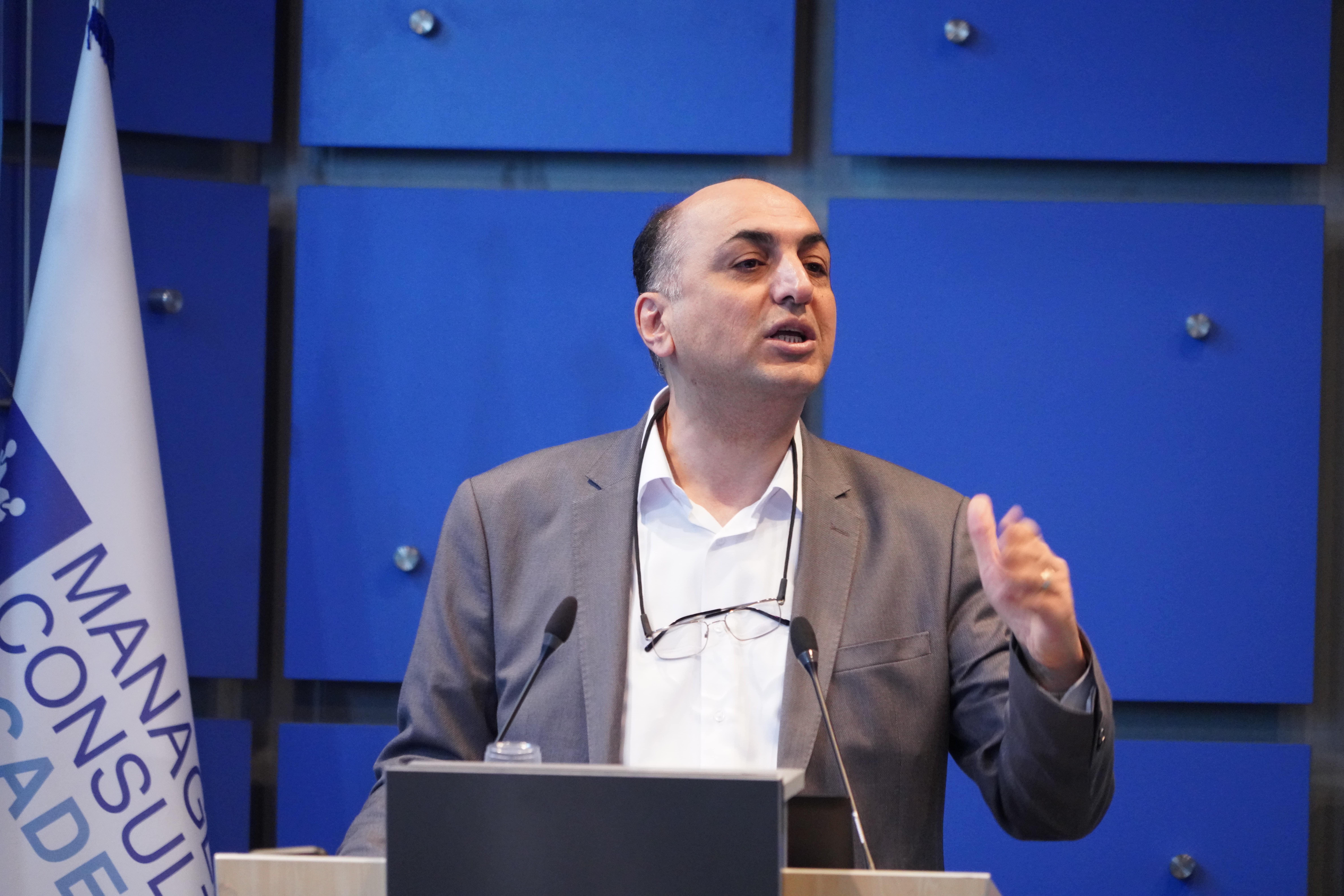 آقای دکتر محمدعلی محمدی با اشاره به برداشت دو وجهی چالش هم به عنوان فرصتی برای رشد مشاوران و هم به عنوان تهدیدها سخن خود را آغاز کردند. توسعه کسبوکار مشاوره مدیریت مستقیما با توسعهیافتگی اقتصاد و سازمان های یک کشور در ارتباط بوده و یک چرخه هم افزای را ایجاد میکند. همچنین بنیاد توسعه اقتصادی کشور هم به شدت موثر بر این امر است که معمولا یا بر مبنای ارزش افزوده یا فروش منابع متمرکز است.