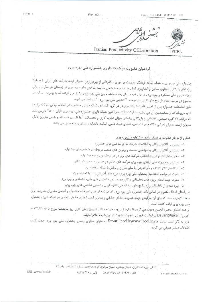 منبع خبر : دبیرخانه جشنواره ملی بهره وری